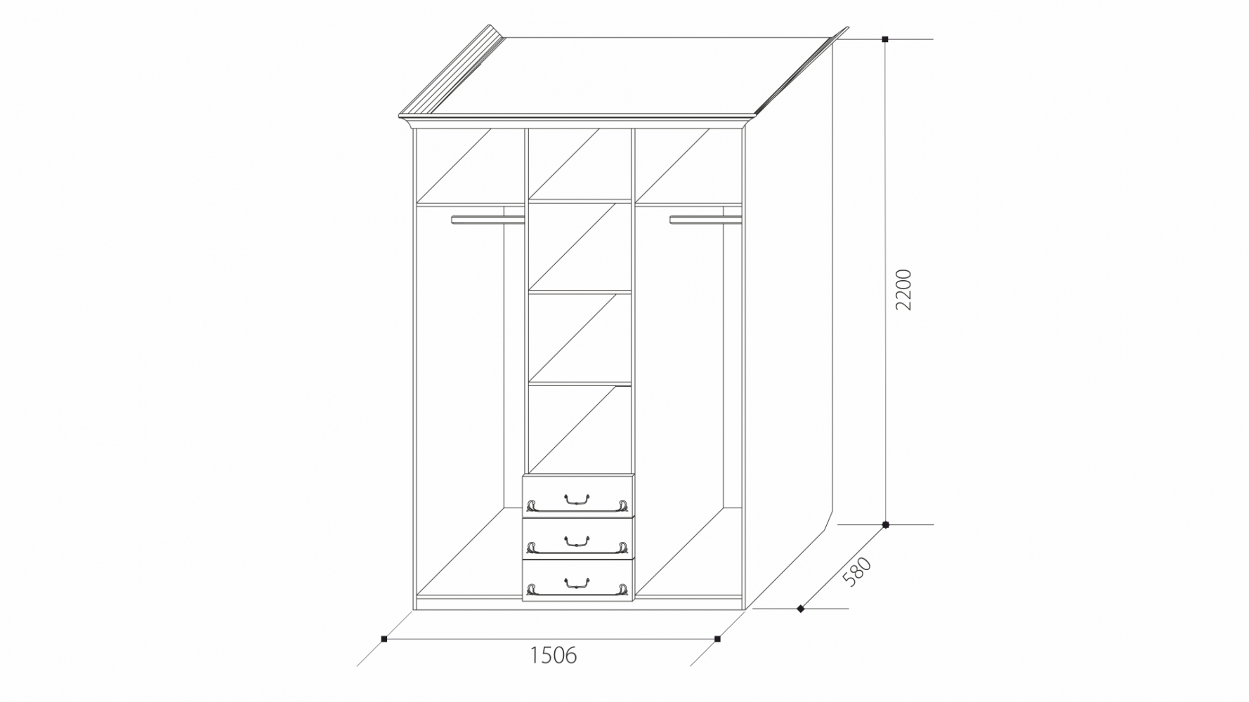 ШКАФ 3х дверн. с выдвижными ящиками без зеркала